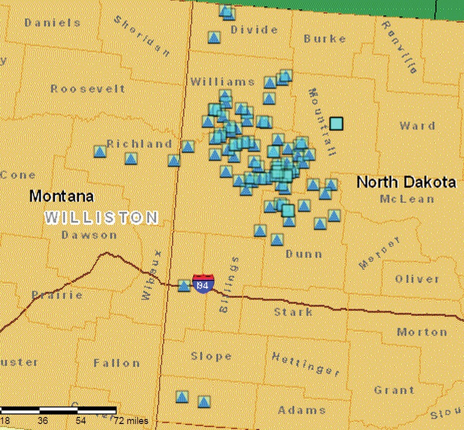 Oil fields and oil rigs locations in North Dakota (Source: .dmr