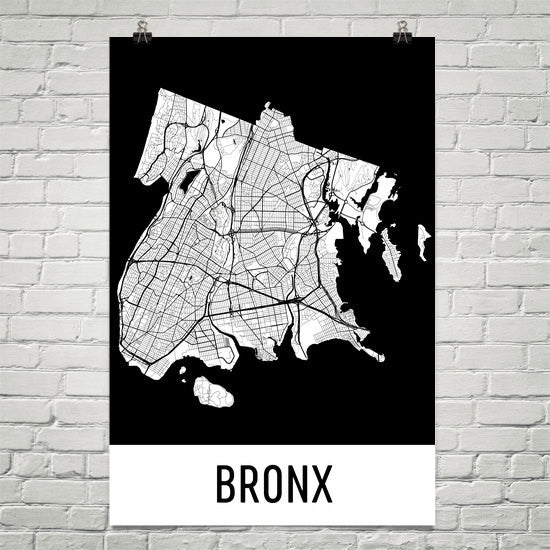Bronx NY Street Map Poster Wall Print by Modern Map Art